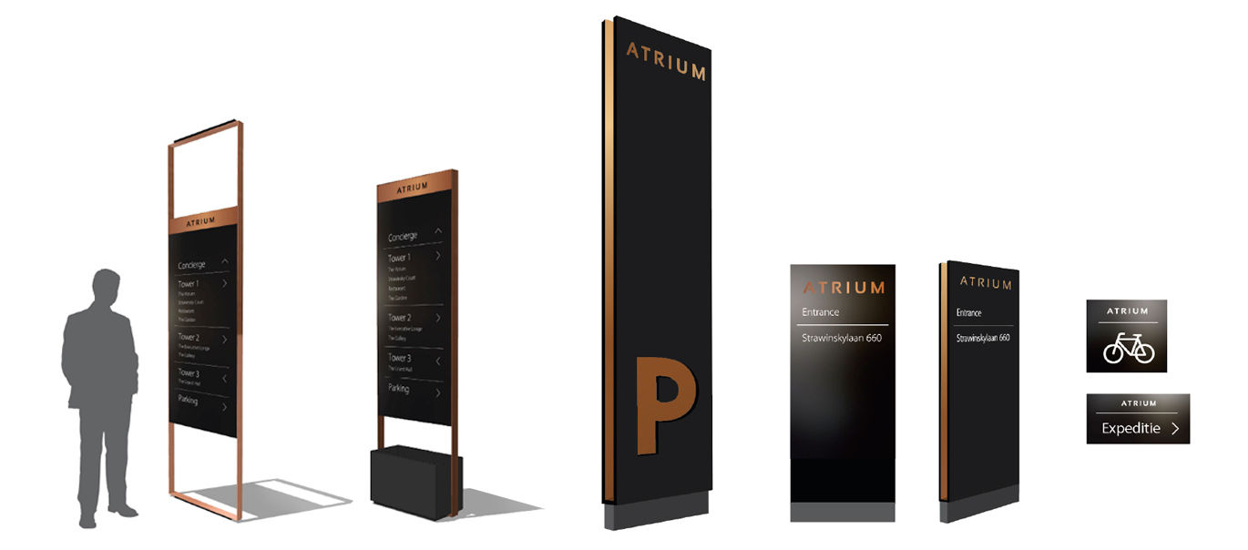 Een systeem voor bewegwijzering ontworpen die naadloos past in de bestaande architectonische taal.